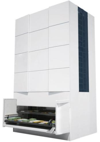 在最小占地面積上實(shí)現(xiàn)最大存儲(chǔ)容量,物料存放在金屬托盤(pán)上,由升降機(jī)完成托盤(pán)的存取和轉(zhuǎn)運(yùn),
